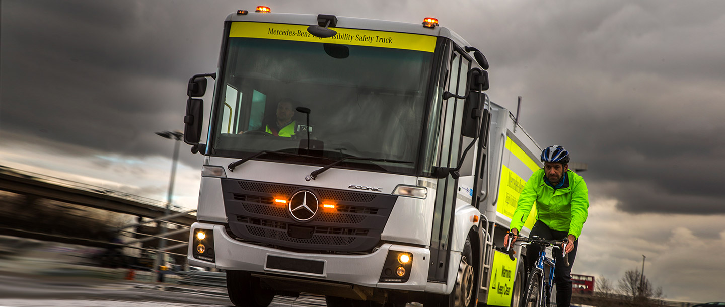 Unübersichtlicher Stadtverkehr. Belebte Straßen. Stressiger Arbeitsalltag. Das Risiko für Unfälle zwischen konventionellen Lkws und schwächeren Verkehrsteilnehmern wie Fußgängern oder Radfahrern steigt.