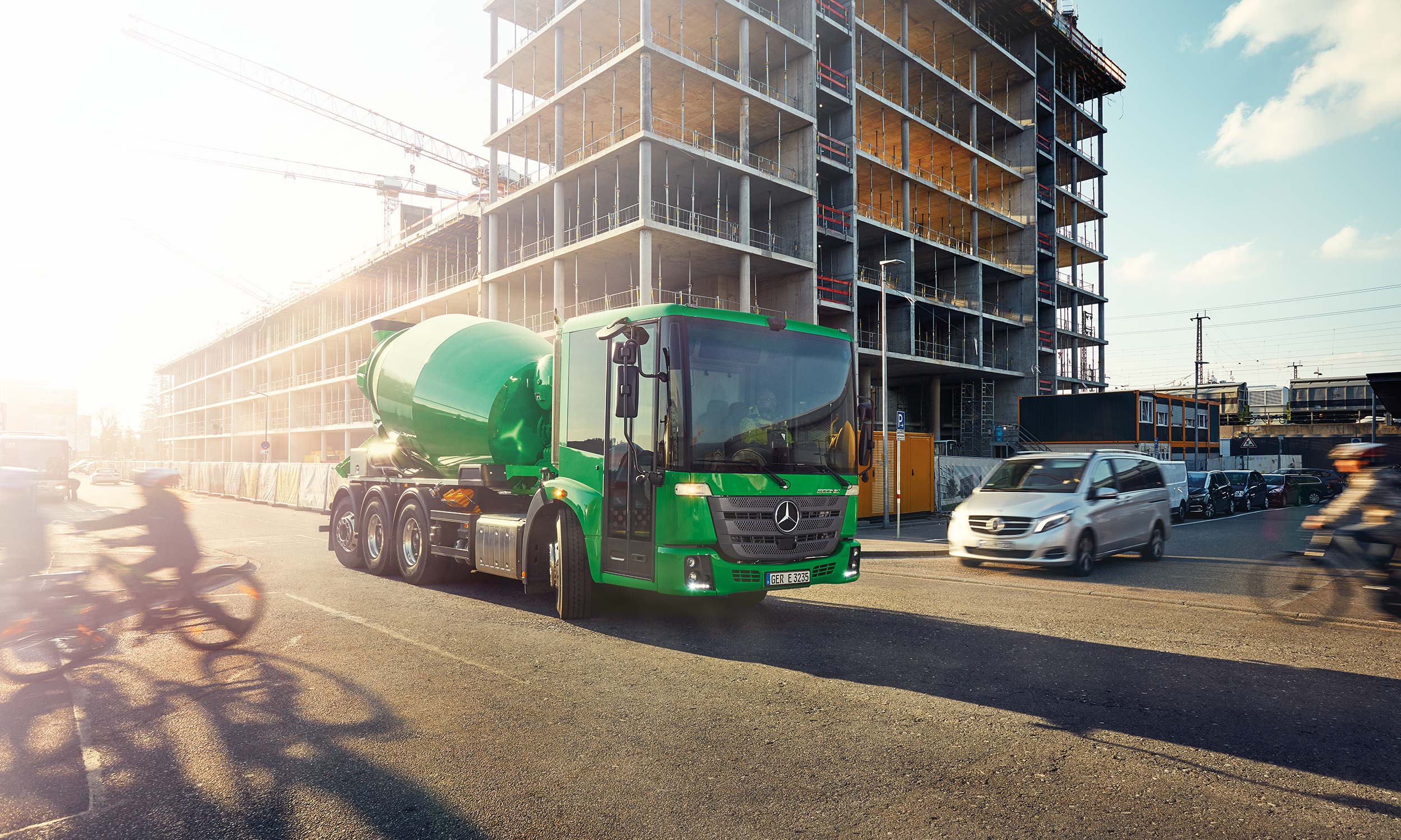 Die Städte der Welt wachsen. Baustellen rücken dabei zunehmend in belebte Stadtzentren. Doch gerade in Metropolen erschweren das dichte Verkehrsaufkommen und strengere Umweltrestriktionen die Baustellen-Logistik. Wo andere Fahrzeugkonzepte von Beginn an neu überdacht werden müssen, ist der Econic von Mercedes-Benz schon längst am Ziel. Er wurde speziell für den urbanen Einsatz entwickelt. Er schont die Umwelt, erhöht die Sicherheit, unterstützt die Crew bei der täglichen Arbeit und transportiert Baustoffe zuverlässig. Auch im dichten Verkehr.