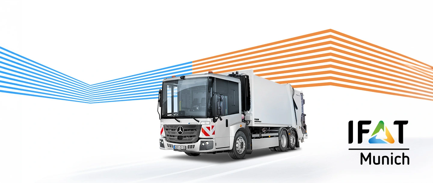 die IFAT steht an und der Econic ist mit dabei. Und zwar als Entsorgungsprofi mit Extra-Power. Der vollelektrische eEconic 400 mit 4 Batteriepaketen und 9-t-Vorderachse ist optimal ausgestattet für die Leerung von Niederflur-Altglascontainern per Ladekran.