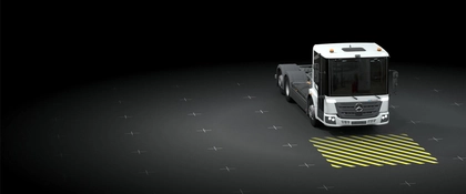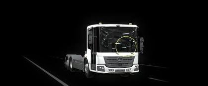 Die Scheinwerfer leuchten den Bereich der ersten Antriebsachse des Special Trucks aus – und ermöglichen so beim Rangieren mehr Sicht und Sicherheit für alle Beteiligten. Ob in der Dämmerung oder in tiefster Nacht.