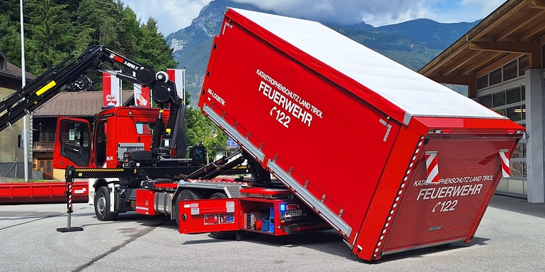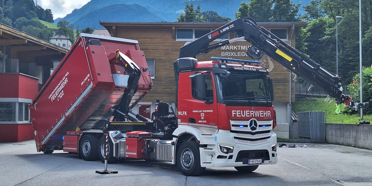Die Kernkompetenz des Fahrzeugs bleibt jedoch der Transport. Ausgestattet ist der Actros mit einem Multilift Ultima 18Z.56 Abrollkipper. Die flexible und bedienerfreundliche Handhabung ist perfekt auf den Feuerwehralltag abgestimmt. Der Quantensprung für die FF Brixlegg liegt in der Zuladung: Während das Vorgängerfahrzeug, ein kleinerer Transporter, bei 900 Kilogramm an seine Grenzen stieß, bewältigt der neue Actros rund neun Tonnen.