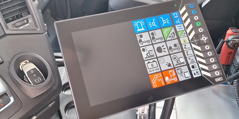 Besonders im Brandeinsatz zeigt der Aufbau seine Stärken: Über eine Schnellwechseleinrichtung kann ein elektrischer Wasser- oder Schaumwerfer direkt am Kran montiert werden. Sogar spezielle Einhängeösen für B-Druckschläuche sind vorhanden. Wenn Arbeiten in der Höhe gefordert sind, kommt der Hubarbeitskorb für zwei Personen zum Einsatz. Für die Maschinisten ist die Steuerung per Fernbedienung eine große Erleichterung im Arbeitsalltag, was zusätzlich die Sicherheit erhöhen kann.