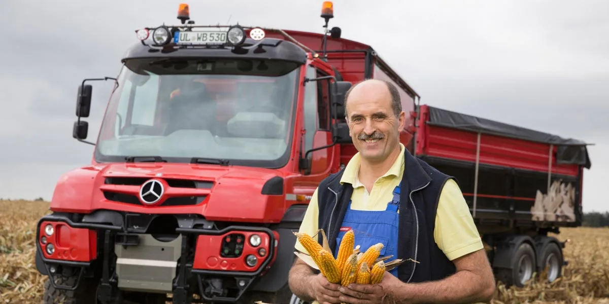 „Der Unimog ist vielseitig, wendig, schnell, geländetauglich, sparsam und kann selbst Nutzlast aufnehmen. Die Aufbauten sind schnell gewechselt, eine Umrüstung erfolgt in wenigen Minuten. Wir haben keine Einschränkungen im Transport durch die LOF-Zulassung und damit auch kein Sonn- und Feiertagsfahrverbot. Der Unimog ist auf allen landwirtschaftlichen Wegen einsetzbar, besitzt beim Fahrkomfort Vorzüge wie ein Lkw und bietet trotzdem die Zulassung als Zugmaschine/Ackerschlepper.“