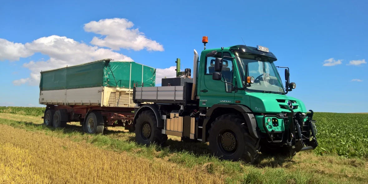 Bei steigendem Kostendruck und größeren Arbeitsflächen kommt es beim Transport auf Schnelligkeit und reibungslose Abläufe an – auch abseits der Felder. Gerade beim Pendeln zwischen Acker und Abladestelle spielt der Unimog seine Stärken gekonnt aus und sorgt für eine hohe Rentabilität: