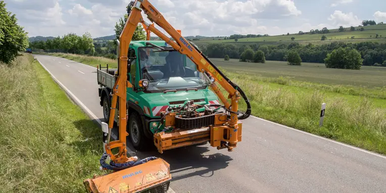 Nützlich bleibt der Unimog auch dann, wenn die Ernte abgeschlossen ist. Lohn- und Dienstleistungsunternehmen haben nämlich die Möglichkeit, kommunale Aufgaben zu übernehmen und sich dadurch ein lukratives Geschäft zu sichern.