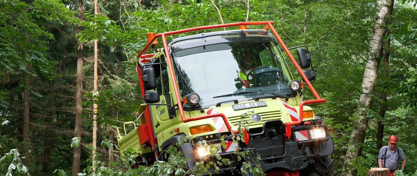 Forst, Wiese oder Wege – der Unimog fühlt sich überall wohl. So wundert es nicht, dass sich Deutschlands größter kommunaler Forstbetrieb bei der Suche nach einem neuen Fahrzeug für den Unimog U 400 entschieden hat. „Auf dem 400 Kilometer langen Wegenetz, den 7.500 Hektar Stadt- und zusätzlich 1.000 Hektar Staatswald ist unser neuer Unimog schnell, wendig, traktionsstark und umweltfreundlich unterwegs“, bestätigt August Bihlmeier, Leiter des Betriebshofs des Städtischen Forstamts Baden-Baden, nach einem halben Jahr Praxiserfahrung.