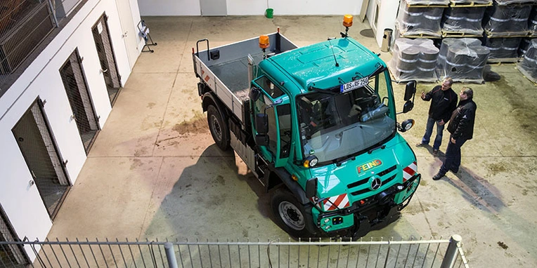 Mähwerke für Böschungen, Häcksler, Bankettfertiger oder Schneepflug für den Winterdienst – in den Hallen stehen zahlreiche Werkzeuge bereit, denen erst der Unimog Leben einhaucht und Feinds Betrieb zum unersetzlichen Helfer für Straßenmeistereien und Landesbetriebe in ganz Deutschland macht. „Ohne den Unimog und seine Spezialfähigkeiten hätte ich mein Geschäft nicht aufbauen können“, blickt Feind zurück.