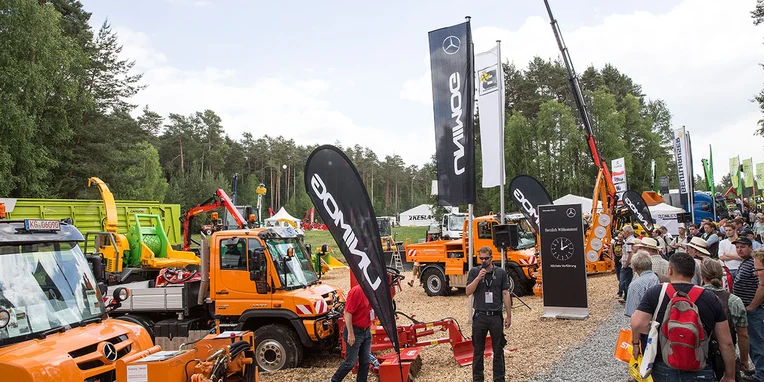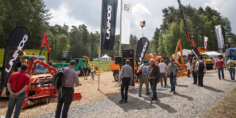 Ob bei der Gehölz- und Baumpflege, in der Transportlogistik oder bei der Energieholzgewinnung – der Unimog ist im Bereich Forst- und Waldwirtschaft vielseitig einsetzbar. Auf der 17. KWF-Tagung in Roding (Oberpfalz, Bayern) bewies der Alleskönner mit verschiedenen Gerätekombinationen seine Einsatzstärke.