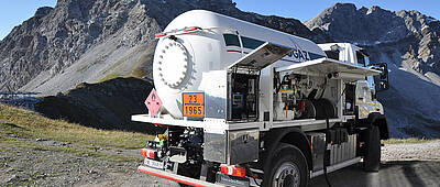 Ebenfalls für jedes Terrain gemacht: der Unimog Geräteträger U 218. Mit einer Breite von lediglich 2,30 m (inkl. Aufbau) und einer Höhe von 3,60 m ist er kompakt und wendig. So gelangen Teams schnell zum Einsatzort und können selbst auf engem Raum agieren. Energieversorgung und Kundenzufriedenheit bleiben damit auch in Notfällen gewährleistet.