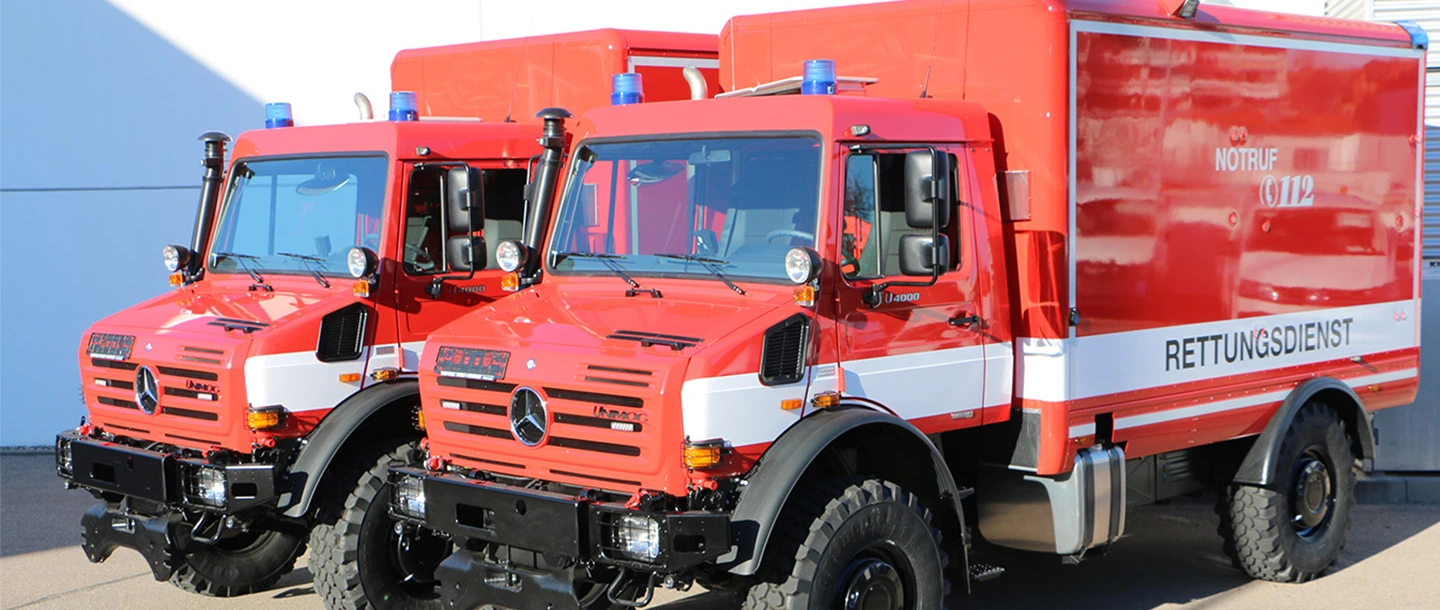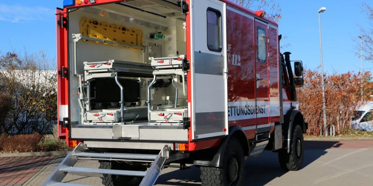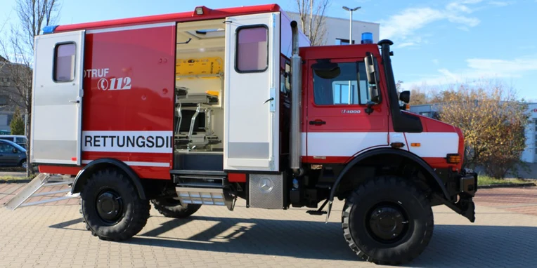 Die Unimog U 4000 mit Kofferaufbau werden vorwiegend für den Krankentransport unterwegs sein, können aber auch als Rettungswagen dienen – dank entsprechender Medizintechnik an Bord. Die neu beschafften Unimog unterstützen die Einsatzkräfte dabei, im Ernstfall entlang der Strecke Hilfe leisten zu können. Durch die hohe Bodenfreiheit und die Verwindungsfähigkeit kann der Unimog im Ernstfall auch über die Gleise fahren oder auch in schwierigem Gelände sicher manövrieren.