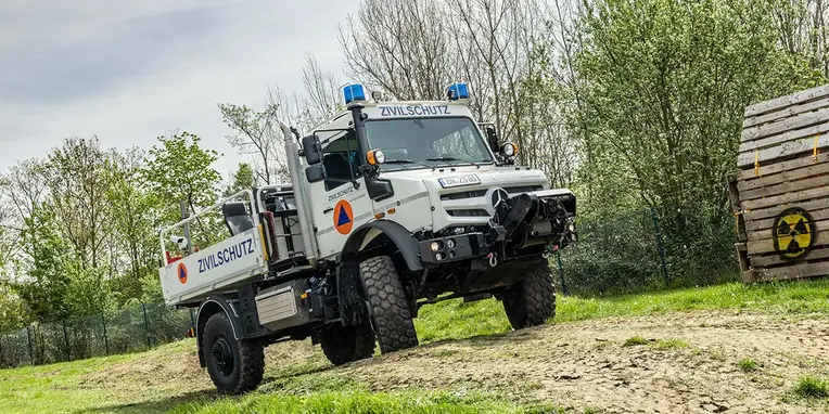 In der Vergangenheit ging die Bundesregierung davon aus, in Europa niemals mehr mit einem militärischen Konflikt konfrontiert zu werden. Ein Trugschluss, wie inzwischen mit Blick auf die Ukraine bekannt ist. Das bedeutete für das Bundesamt für Bevölkerungsschutz und Katastrophenhilfe (BBK) in Bonn, dass für derlei Situationen keinerlei hochgeländegängigen Rettungs- und Bergefahrzeuge seitens des Bundes vorhanden sind, die im Fall der Fälle im Zivilschutz zum Einsatz kommen können. Das ändert sich nun mit dem Unimog U 5023.