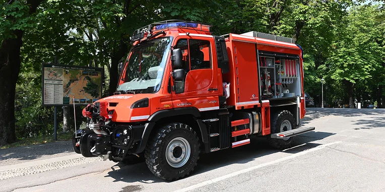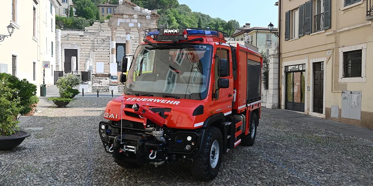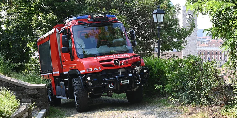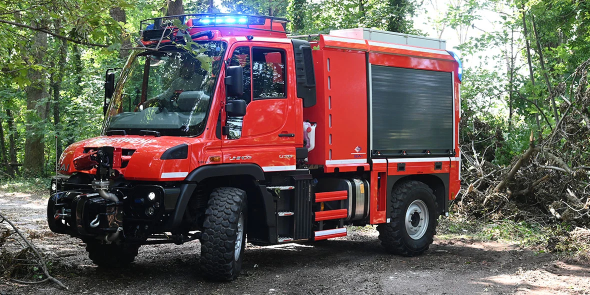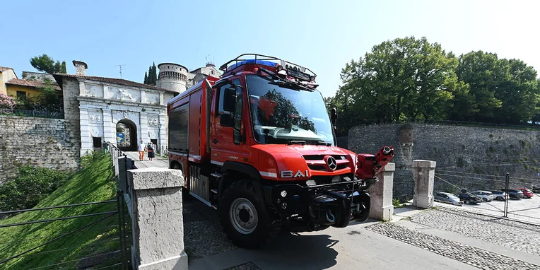 Zum universell einsetzbaren Löschfahrzeug wird der Unimog U 218 BAI VSAF 2000 dank der maßgeschneiderten Ausstattung durch die bewährte Zusammenarbeit mit Aufbauherstellern. Der extrem leichte und rostfreie Aufbau in ungeschweißter Aluminiumprofilstruktur von BAI Brescia Antincendi International Srl bietet nicht nur Platz für 2.000 l Löschwasser, sondern auch zahlreiche weitere Einsatzvorteile.