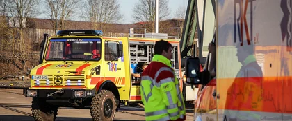 Das elektrische Notfallsystem BAI DIAMOND sorgt mit LED-Blaulicht auf dem Dach von Kabine und hinterem Aufbau für weithin gute Sichtbarkeit. Blaue LEDs an der Front und ein Martinshorn runden das Signalsystem ab. Zusätzlich sind an den Seiten, den Trittbrettern sowie am Dach weitere LED-Leuchten angebracht, um den Zugang zu den Geräten am Aufbau bei jeder Tag- und Nachtzeit bestmöglich zu beleuchten.