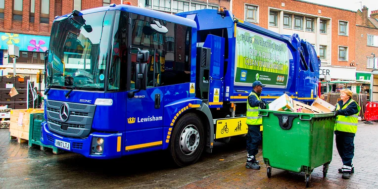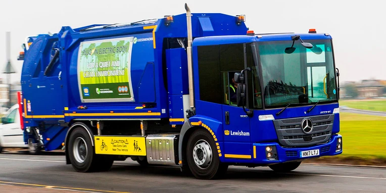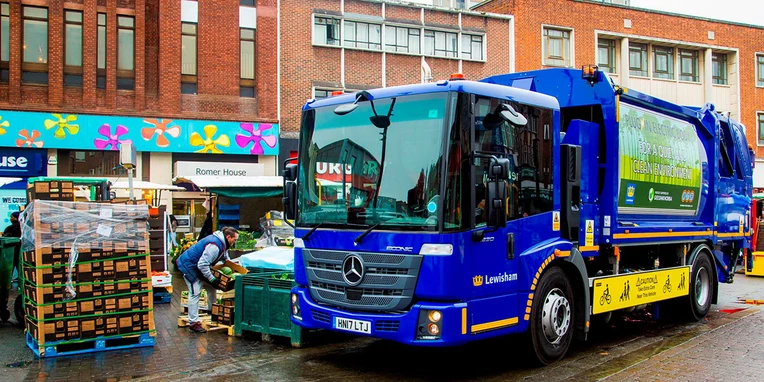 Im Londoner Stadtteil Lewisham legt Noel Everest großen Wert auf umweltfreundliche und leise Abfallsammlung. Auf dem örtlichen Marktplatz herrscht oft reger Betrieb, deshalb macht der Service Group Manager der städtischen Fuhrparkverwaltung bei Entsorgungsfahrzeugen keine Kompromisse in Sachen Sicherheit und Zuverlässigkeit. Muss er auch nicht. Denn der elektrische Schütt- und Pressaufbau des Mercedes-Benz Econic 1838 4x2 sammelt und komprimiert den anfallenden Müll ganz ohne Lärm und Emissionen – und begeistert damit Anwohner und die städtische Fuhrparkverwaltung gleichermaßen.
