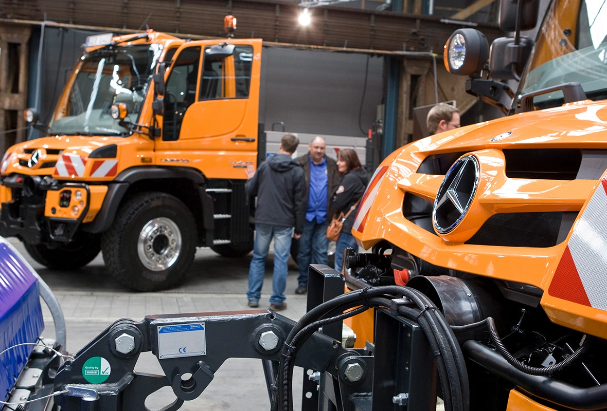 Ausgerichtet wurde die Spezialmesse von Mercedes-Benz in Kooperation mit zahlreichen Aufbauherstellern. Im Mittelpunkt standen vielseitige An- und Aufbaulösungen für den ganzjährigen Arbeitseinsatz mit dem Unimog. Kehrmaschinen, Hubbühnen, Mähwerkzeuge, Schneeschaufeln, Gießanlagen und viele weitere Systeme lassen sich dank standardisierter Anschlussmöglichkeiten am Unimog integrieren und bei Bedarf leicht austauschen.