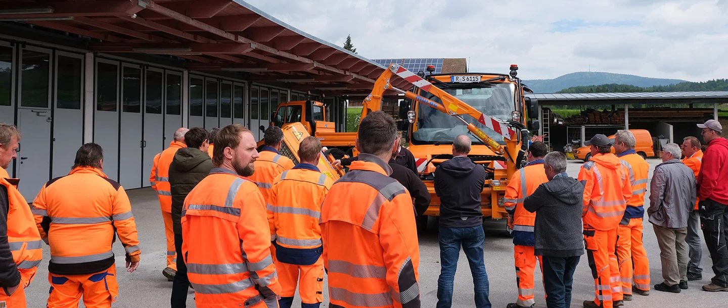 Gemeinsam wurden anhand von Praxisbeispielen auch exemplarische Kosten-/Nutzenrechnungen für das Mähen mit dem Unimog aufgestellt. Die vielen Vorteile gegenüber dem Mäheinsatz mit einem Traktor traten dabei deutlich zutage.