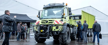Mit einem Unimog U 218 und einem Mulag Frontausleger MFK 500 konnten die Fahrer den Mäheinsatz in den Gräben und Straßenrändern rund um den Veranstaltungsort testen. Der Unimog U 218 als Nachfolger der Unimog U 1000er-Reihe vereint die bewährte Zuverlässigkeit, Kraft und Nutzlast des Fahrzeugs mit technischen Weiterentwicklungen in Sachen Sicherheit und Effizienz.