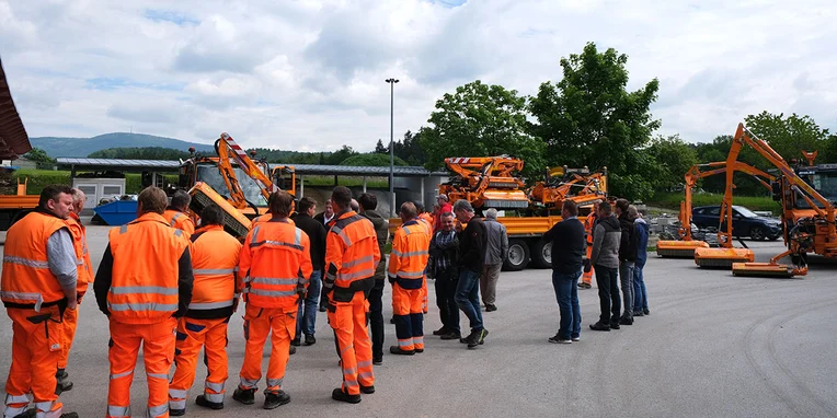 Kompetente Experten standen den teilnehmenden kommunalen Mitarbeiter bei allen Fragen rund um Fahrzeug und Einsatzmöglichkeiten Rede und Antwort. Im bewusst kleinen Kreis konnten so wertvolle Erfahrungen und Praxistipps ausgetauscht werden.
