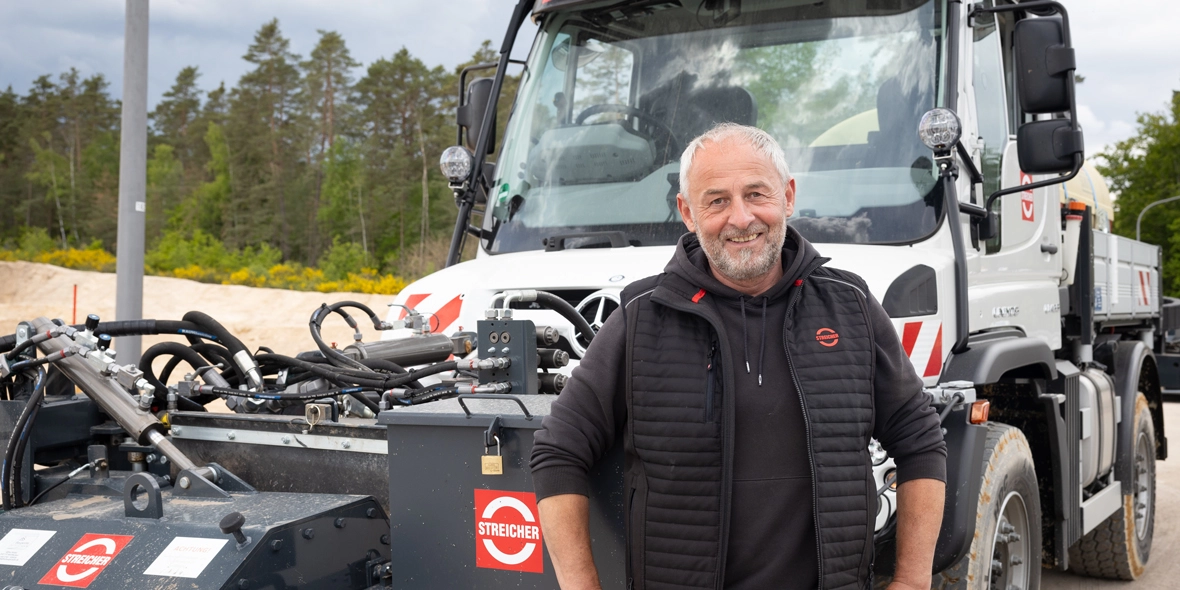Mit dem Unimog hat Streicher schon seit den 1970er Jahren Erfahrung. „Grob überschlagen müsste der Neueste unser Vierzigster sein, den wir angeschafft haben“, schätzt Hans-Jürgen Schwarzbauer. „Es ist die Wendigkeit, die hohe Geländegängigkeit, die schnelle Transportgeschwindigkeit, die starke Hydraulikleistung und die flexible Einsatzmöglichkeit, die den Unimog auszeichnet“, schwärmt er. Nicht zu vergessen: die Kompaktheit des Fahrzeugs bei lediglich 3.150 Millimeter Radstand. Und weil das Unternehmen auch Spezialmaschinen für höchste Ansprüche und besondere Einsatzgebiete baut und diese stets in elegantem Lichtgrau ausliefert, haben sie ihren Unimog in ebendieser Sonderfarbe bestellt. Logisch.