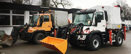 Der neue Unimog findet aber auch im Winter seinen Einsatz – dann mit montiertem Schneepflug im Räumdienst. Derart ausgelastet fehlen dem orange-weißen Alleskönner nach zwölf Monaten nur noch wenige Betriebsstunden zum vierstelligen Jubiläum.