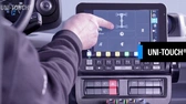 So funktioniert das elektronische Zündschloss des Unimog Bediensystems UNI-TOUCH®: Lege den Schlüssel in die Schlüsselablage und drücke die Start-Stopp-Taste. Der erste Tastendruck aktiviert die Radiostellung für Verbraucher, der zweite Tastendruck aktiviert die Fahrstellung mit Monitor, der dritte Tastendruck bei betätigtem Bremspedal startet das Fahrzeug. Ein vierter Tastendruck ohne Bremspedal schaltet das Fahrzeug aus. Der Direktstart erfolgt durch langes Drücken der Start-Stopp-Taste mit Bremspedal.
