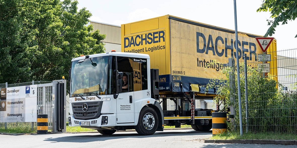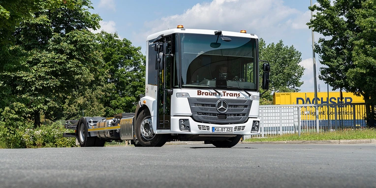 During the occasional trips outside the Glen Dimplex factory premises in Kulmbach, the new Econic from Braun Trans causes quite a stir. Because to unknowing observers, it almost looks as if the containers are floating above the loading area. The reason for this rare sight: The Mercedes-Benz transports swap bodies complete with upright support legs.
