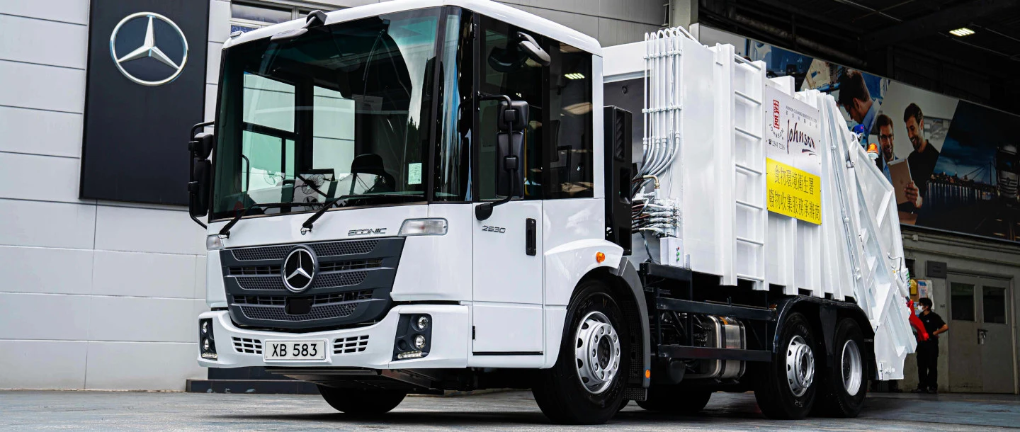 The translation of Hong Kong is "fragrant harbour". Thus cleanliness and sustainability are of central importance to the Asian mega-metropolis with its population of around 7.5 million. This is the case in the waste management industry, for example, where thousands of tonnes of waste must be removed fast and safely on a daily basis. To then also comply with modern demands regarding safety and comfort, state and private waste disposal companies rely increasingly on low-entry trucks. And what was the first choice for the latest fleet expansion? the Econic. 80 units of the waste disposal truck will be on Hong Kong’s roads in future.
