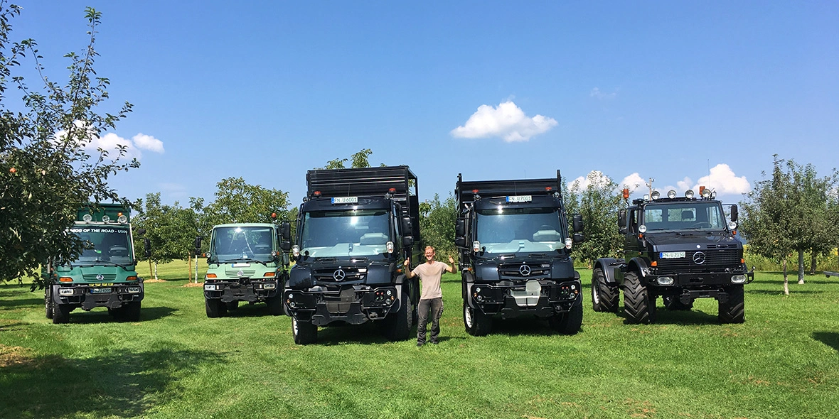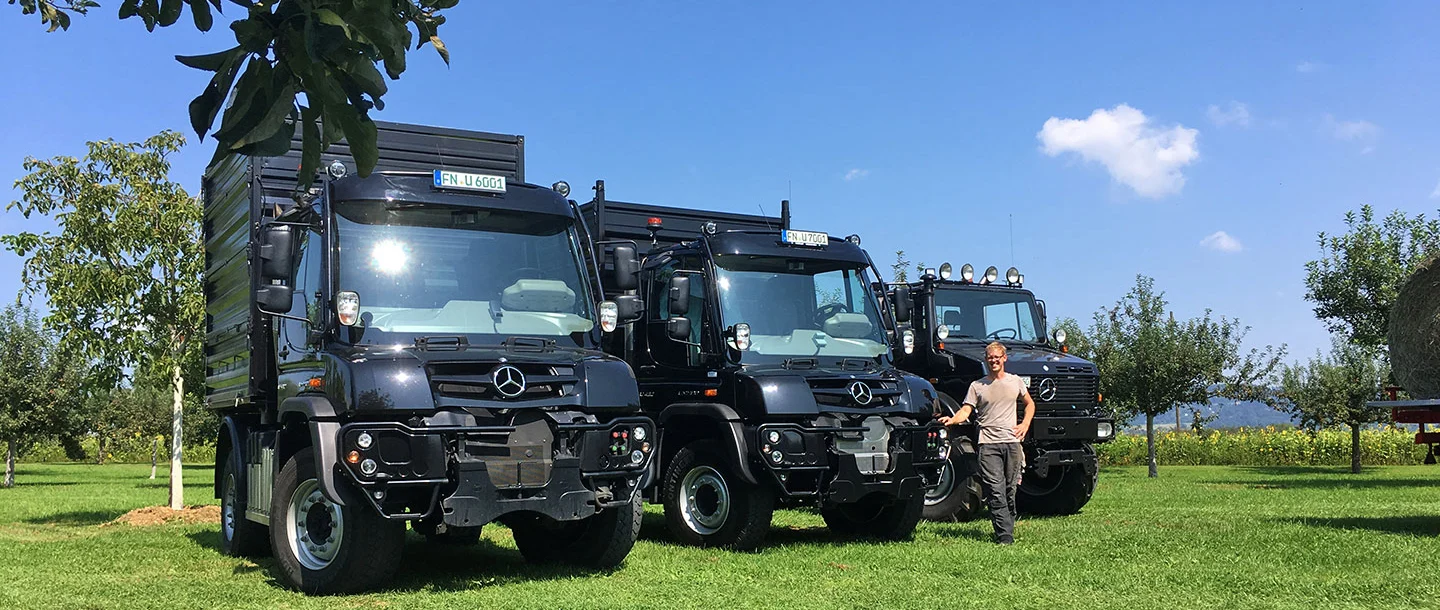 Everything started with a Unimog U 406. A little later, a Unimog U 1700 and a Unimog U 2150 joined the club. Currently, Stefan Stengele has four of the special trucks in his fleet: two Unimog U 400 and two new Unimog U 430 models. And they're in daily use because the fruit season is pretty much an all-year-round job. Besides apples, the efficient all-rounders also transport pears, berries and plums from the surrounding farmyards and plantations to a range of warehousing locations.
