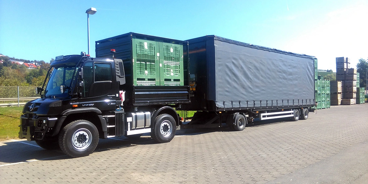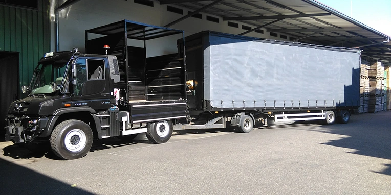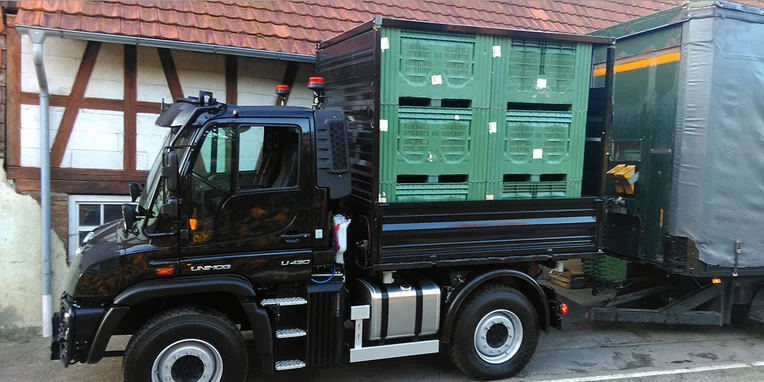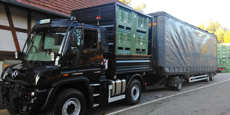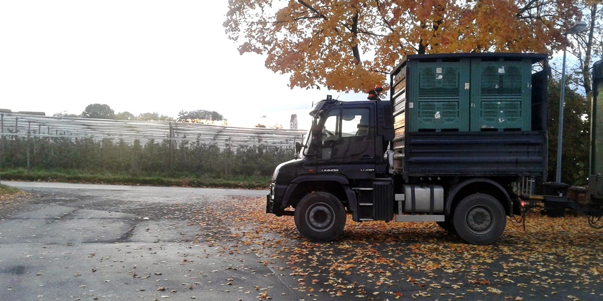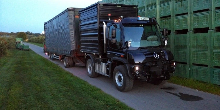 Fruit harvest with the Unimog at Agrartransporte Lauber.
