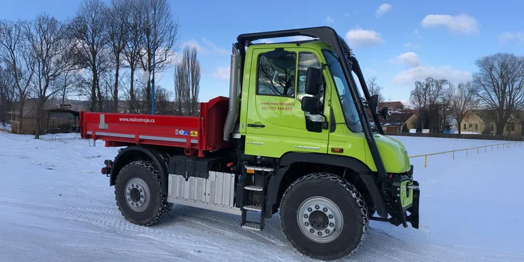 As a tractor unit, Malostroje’s Unimog U 430 is the first of its kind in the Czech Republic. The all-rounder performs a wide range of tasks: from heavy-duty transport, which the Unimog effortlessly handles thanks to its 221 kW/300 hp, six-cylinder engine, to working with specially manufactured implements like the hydraulic crane, which extends across the entire loading area of the semitrailer. The Unimog U 430 is also equipped with a powerful hydraulic system to support the implements’ functions.