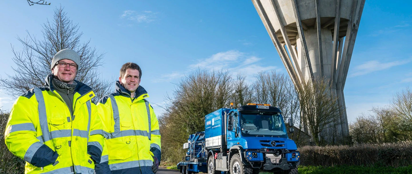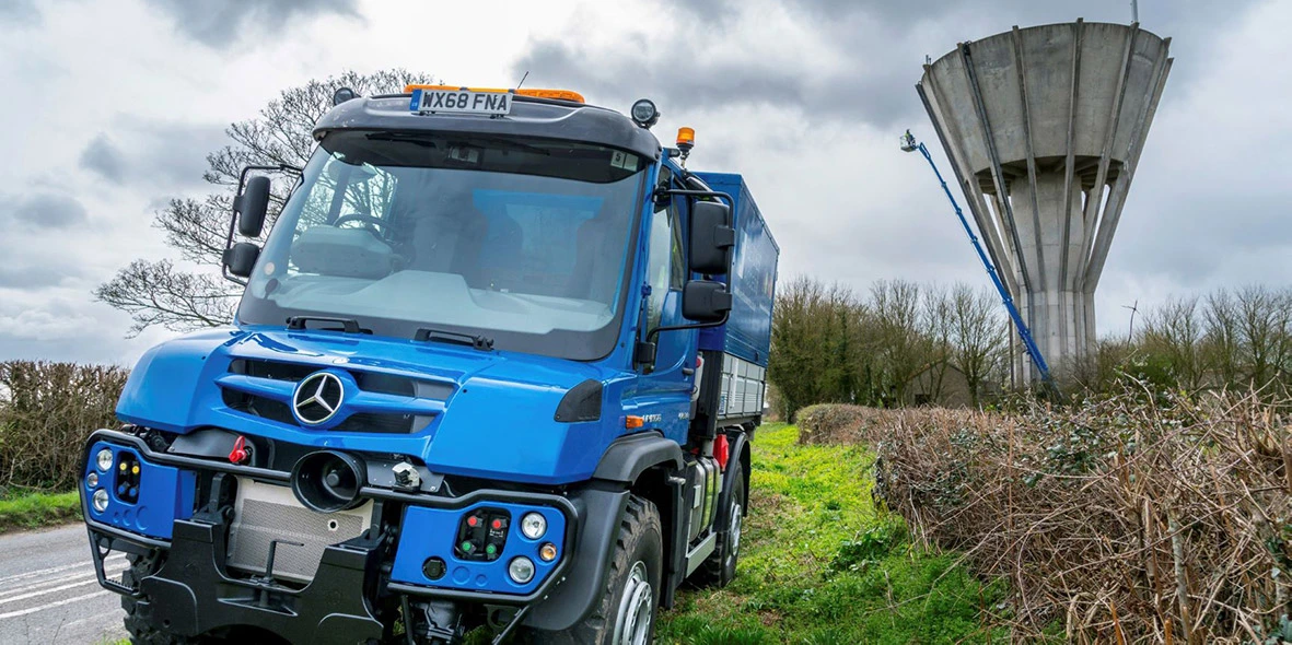 Fletcher Access based in Worcester is a company specialised in mobile working at great heights. Whether cleaning high-rise building facades, roof and chimney repairs or trimming branches off tall trees. The two managing brothers Anthony and Simon have also started a flight of fancy in terms of efficiency. With the Unimog U 530, they are replacing three vehicles – thus significantly reducing their running costs.