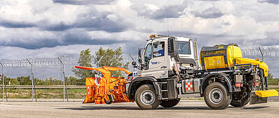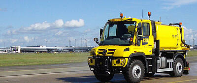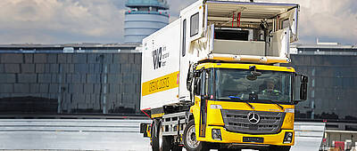 The Mercedes-Benz Econic fulfils key requirements for this kind of specialised usage as standard, with features that include a low overall height which makes it possible to drive under aircraft wings, good manoeuvrability courtesy of the hydraulic automatic transmission (Allison) and a low cab concept to facilitate getting in and out frequently. Large windows offer a good all-round view.