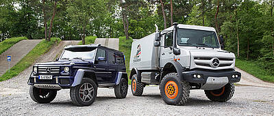 According to Günther Schumacher, in particular, it was the tyre pressure control system on the Unimog which can be operated from the steering wheel which proved to a "very fine feature": the tyres can be set separately to different tyre pressures, even while on the move, and feedback is provided directly on the display. As a result the off-road camper van was able to overcome stones, mud and fallen tree trunks slowly but with little effort.