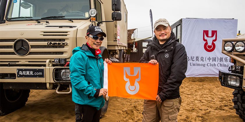 Splashes of yellow and red flicker in the dusty dry desert air. They appear from the middle of nowhere as the Unimog turns the corner, brightly coloured tents and flags belonging to the camp of the twelfth Unimog Off-road Tour in China’s Alashan Desert. The camp is on the route of Liu Bin and other members of the Unimog Club China. And is the highlight of their a month-long off-road adventure through the Middle Kingdom.
