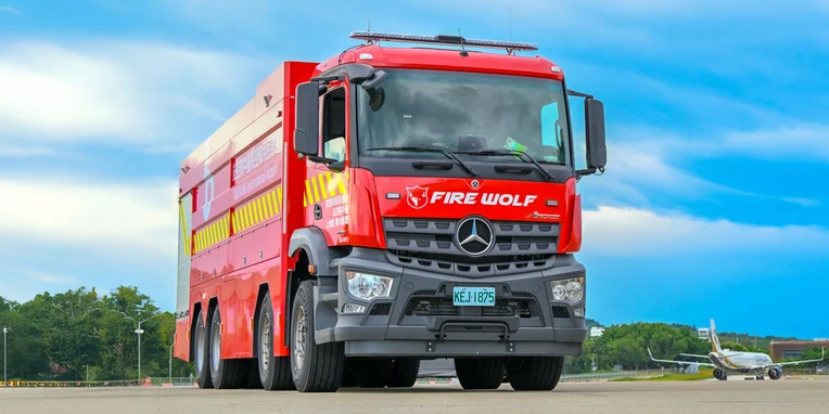 The Arocs 4146 is a vital reinforcement for the fire service at Taichung Airport in Taiwan.