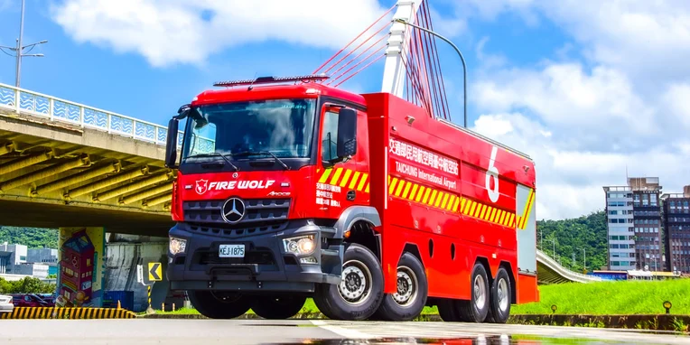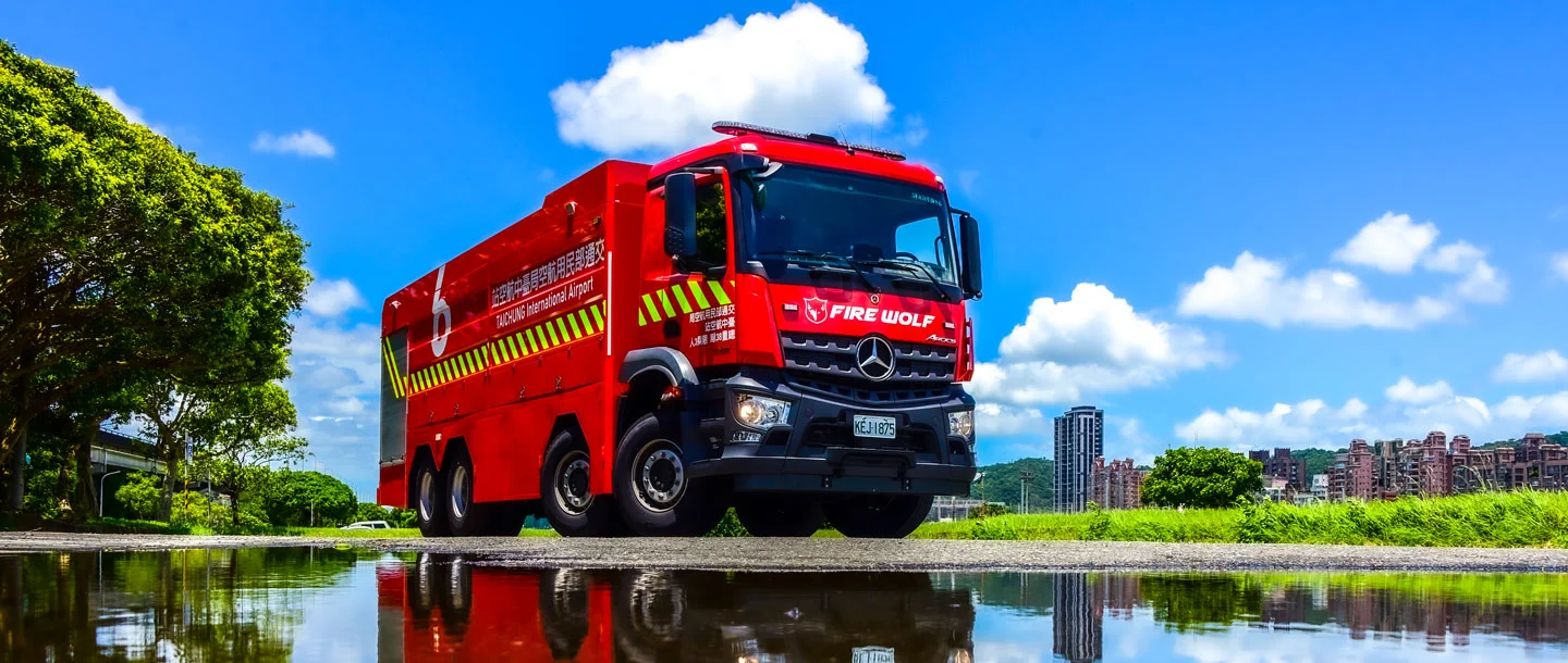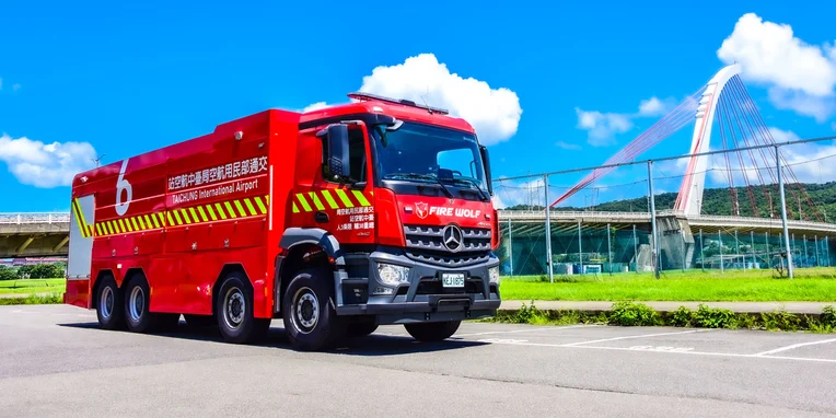 With 20 tonnes of water on board, 456 hp under the bonnet and an acceleration to 80 km/h in 40 seconds, everything in the Arocs is designed for speed, range and reliability. For the leaders of the Taichung airport fire service, one thing is clear: this Mercedes-Benz truck is unmatched in its class.