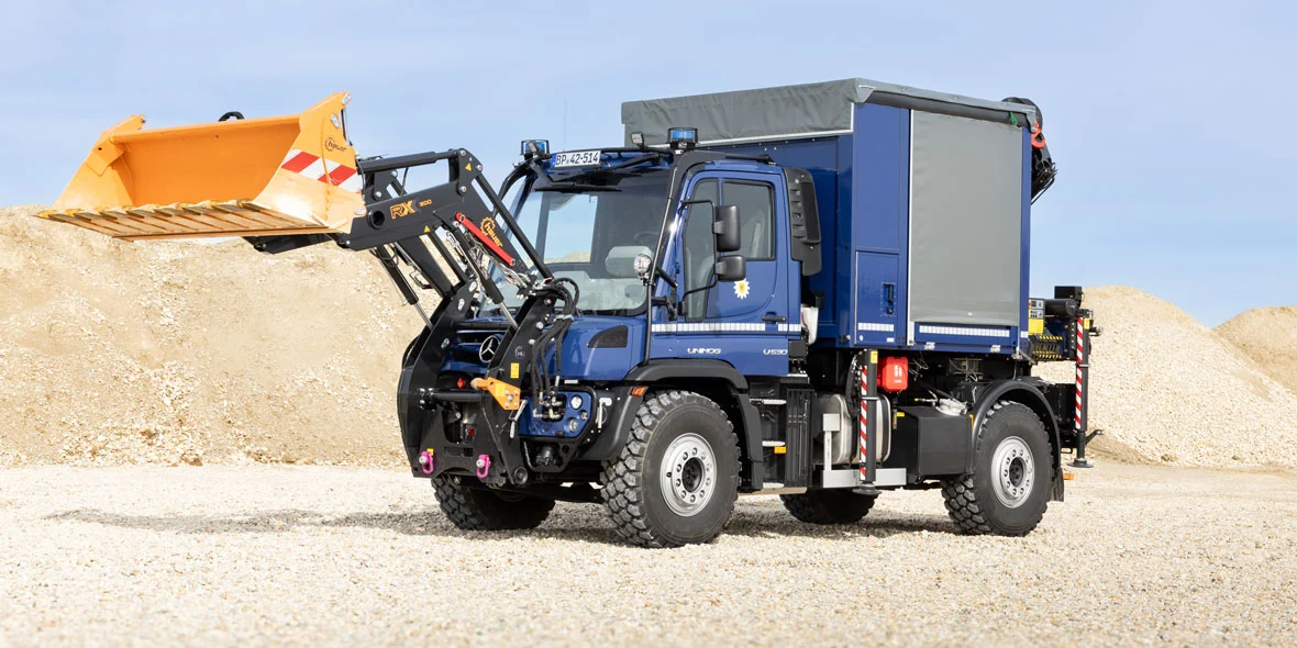 All Unimog are equipped with a Hauer front loader, which can also be equipped with a pallet fork. “The practical thing now is that we can dismantle it in just a few minutes when it’s not needed. The axle load on the new U 530 is designed in such a way that we do not need a counterweight to the Palfinger crane (PK 18502 SH) mounted at the rear.”
