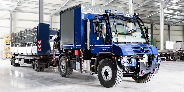 There are ten riot police departments in this country. Between 600 and 800 men and women work there. And each of these departments has a very special Unimog in its fleet – and since this year, each has a brand new one.
