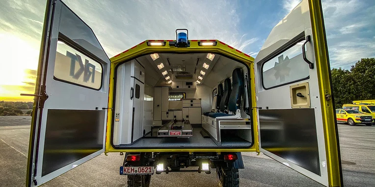 Technical support for the team comes from their highly professional vehicle fleet of two Unimog U 1300 trucks – both decked out in the yellow livery of the rescue service.