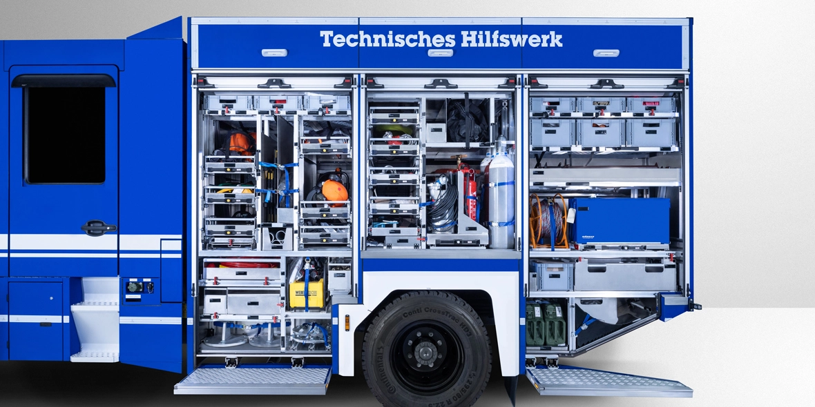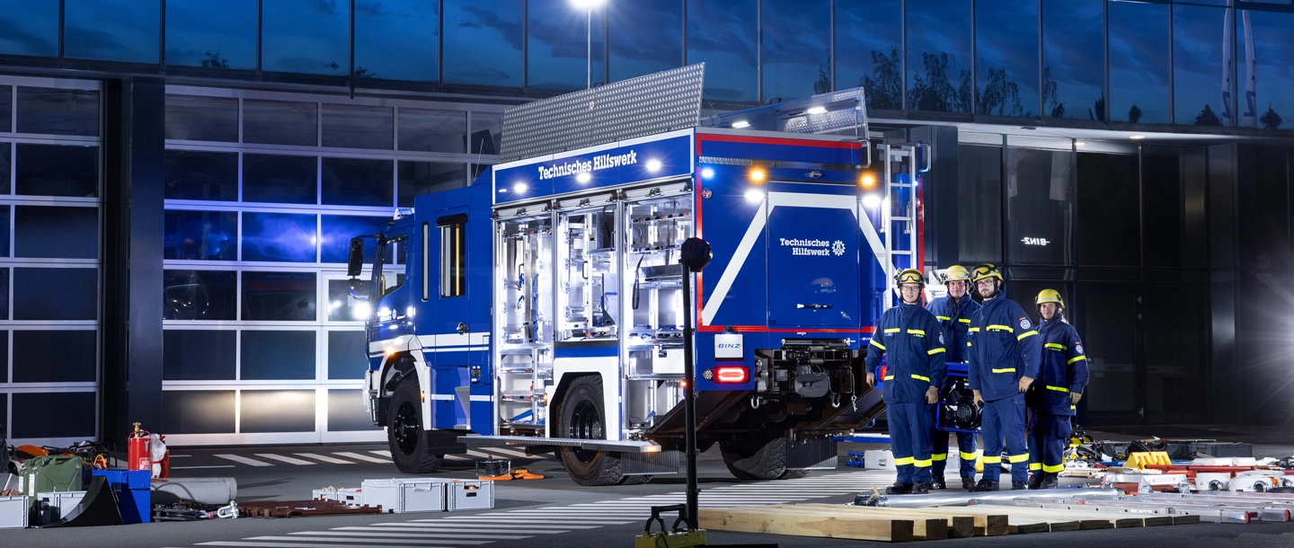 Vehicles used by the Technical Assistance Agency must have certain properties. On the Mercedes-Benz Atego, the chassis, body and equipment are cleverly coordinated with each other to create a reliable tool for rescue workers. It doesn't just work in theory, but in practice too: firm plans are already in place to put 120 Atego-based equipment vehicles into operation, with scope for an additional 60 on top of that.