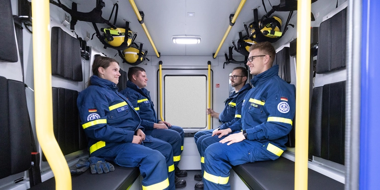Behind the driver’s cab is the largest version of the docking cab - it forms the group cab. This offers seven comfortable seats for the response team. Grab handles and three-point seat belts provide stability, and holders for helmets and radios are also available in every seat. With the generous seat spacing and extras such as USB sockets, the crew cab more than adequately meets modern standards of comfort.