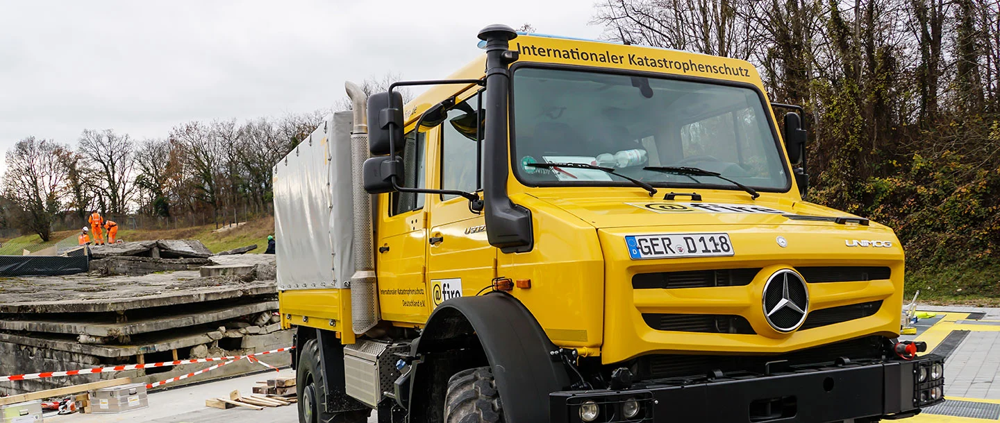 With its extreme off-road Unimog, the German search and rescue team @fire successfully participated in an exercise of the UN’s International Search and Rescue Advisory Group (INSARAG). By completing the Urban Search and Rescue Exercise, the rescuers qualified as a USAR "Light" team. Their yellow Unimog U 5023 was reliably by their side. Thanks to its uncompromising off-road capabilities and wide range of possible applications, the Special Truck’s operational readiness is virtually unshakeable, even in difficult recovery operations.