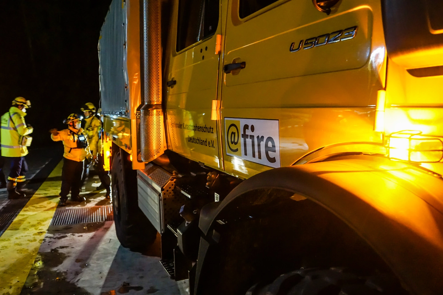 When the team was alerted on Sunday morning, 2.5 t of material and tools needed to be loaded. The Unimog excels in this respect with its spacious loading area. Once the rescue team arrives at the scene of the incident, following an initial assessment of the situation they set out on the first evening in the Unimog U 5023.Working together against the tides.The exercise scenario involves recovering several survivors from collapsed buildings. The Unimog actively supports the rescuers with its wide range of applications. Among other things, a cable technology is attached to the vehicle to free the injured from inaccessible buildings. The rescue operations last for several days and nights without the rescuers or their emergency vehicle becoming tired.