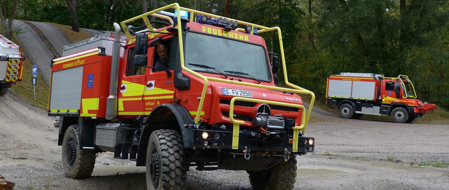 Flexible in tight spaces, unstoppable off-road: Stuttgart fire service is increasing its vehicle fleet's deployment range – along narrow service roads in the city centre as well as in the event of forest fires and other emergency situations in the region surrounding the Swabian city – with two new equipment vehicles: one Unimog U 5023 and one Unimog U 323.