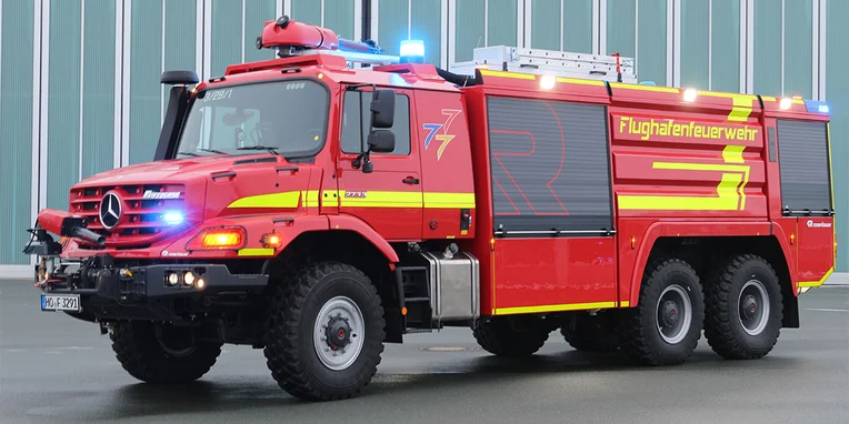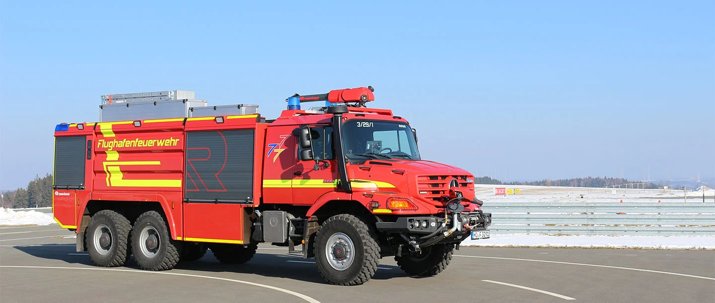 In an emergency, every second counts. Hof-Plauen Airport in Upper Franconia is host to daily business and company flights bound for destinations all over Europe, and also to private charter flights. The local aviation club uses the airport runway too. This regional airport with irregular flights still has to be completely safe at all times, of course. A Mercedes-Benz Zetros on the premises takes care of that – with over 100 operations annually.