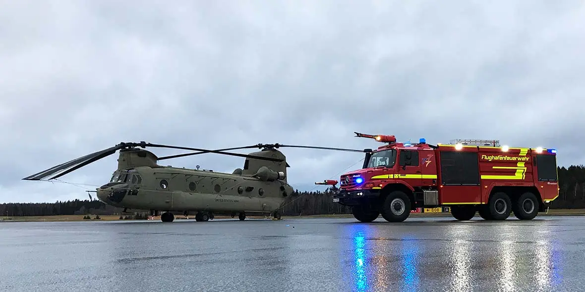 - "Hot refuelling" – providing fire protection for helicopter refuelling with the engine running, e.g. when the electricity supply needs to be maintained for care of patients in a rescue helicopter