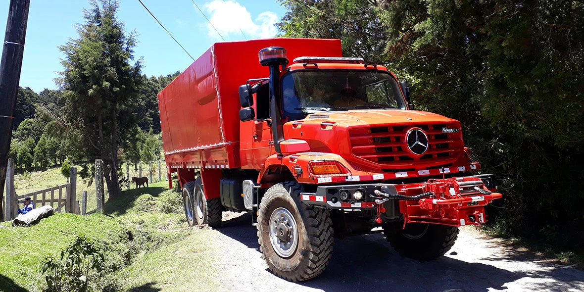 In order to function under these extreme conditions, the Costa Rican firefighting services looked for a vehicle which is equally extreme. Its reputation as a robust cab-behind-engine truck preceded the Zetros. As the first vehicle of its type, a Zetros 2733 6x6 has been in operation for the Costa Rican special forces for a few months now.