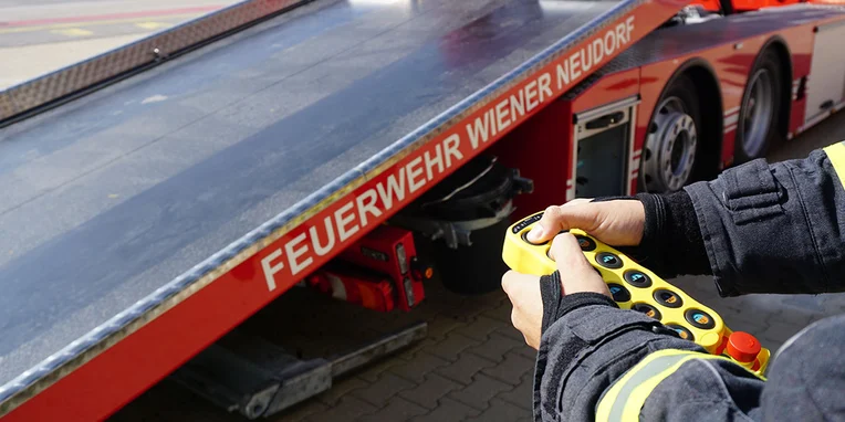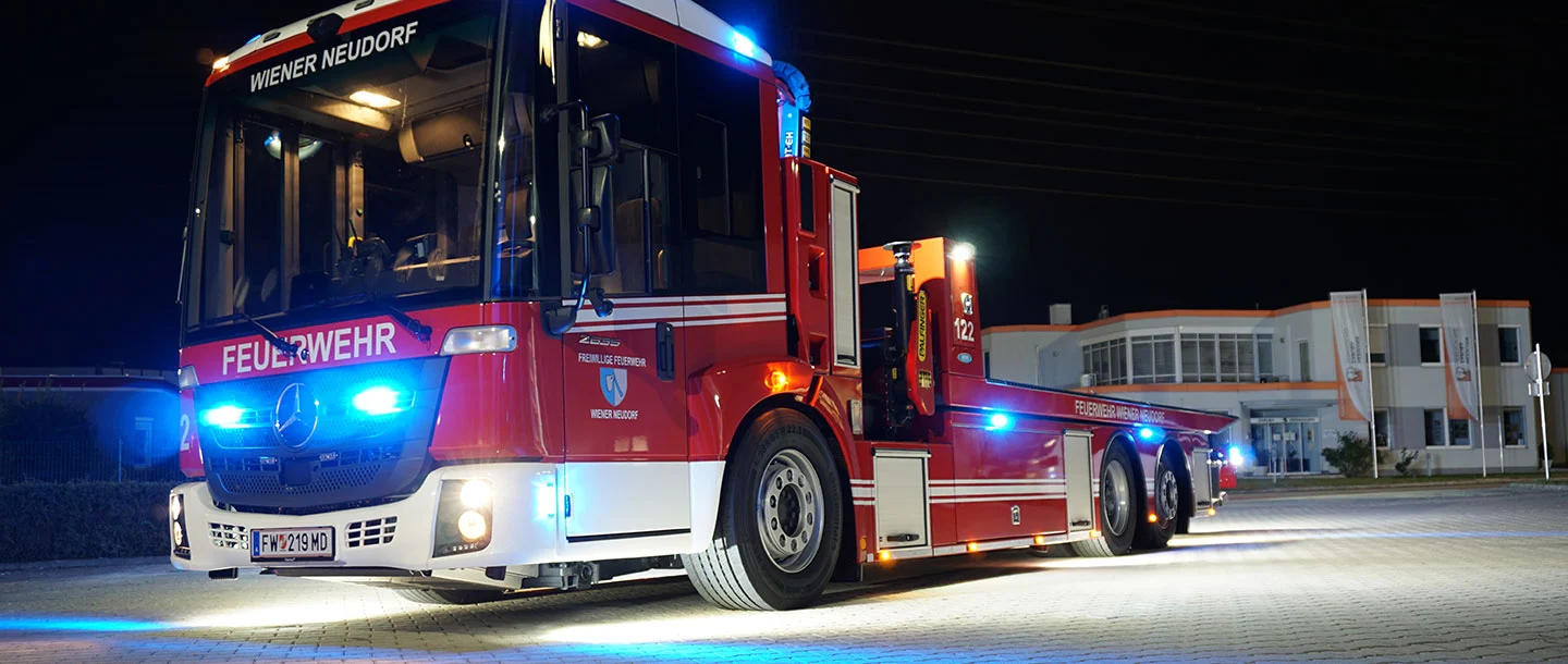 "Overturned van on the A2 near Vienna. One person trapped." From this point on, every second counts for Vienna-Neudorf's volunteer fire brigade. The volunteer rescuers rush into the fire station, don their uniforms and start up the vehicles. Accompanying them on their shout today: a brand new Mercedes-Benz Econic recovery vehicle which was specially developed for precisely this type of operation.