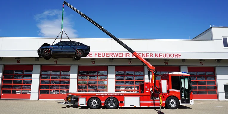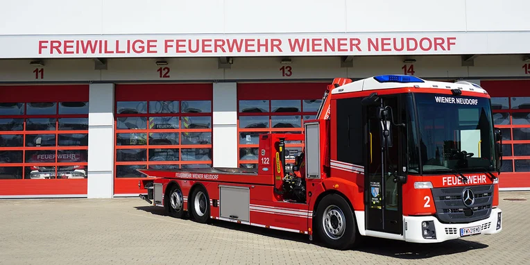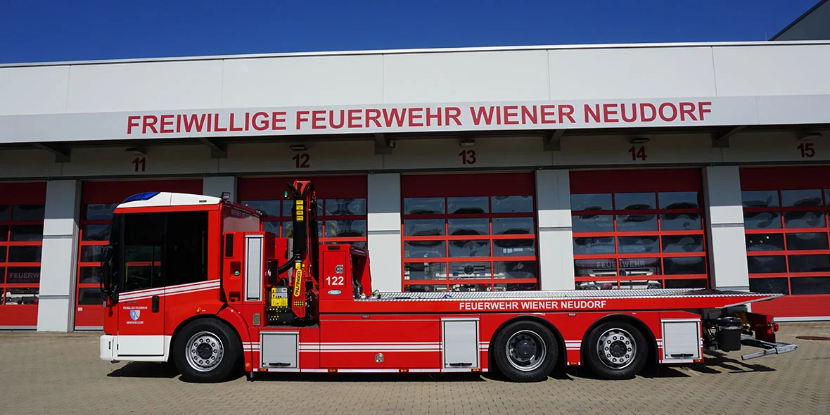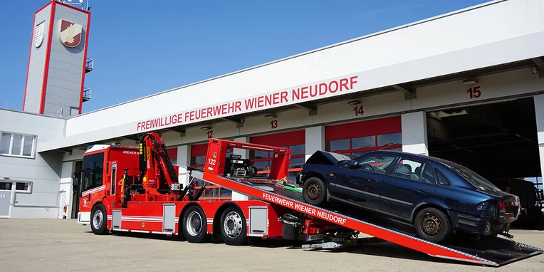In order to be best equipped for these types of operations, the Vienna-Neudorf volunteer fire brigade purchased a new recovery vehicle (or ASP as they call it) based on a Mercedes-Benz Econic 2635 in autumn 2020 as a replacement for their 18-year-old Mercedes-Benz Atego 1323L. The three-axle vehicle – which sports a steered trailing third axle and a special body from Eberl – is powered by a six-cylinder diesel engine with an output of 354 hp (260 kW) and, thanks to its remote-controlled recovery platform and rear-mounted wheel lifts, it forms an integral part of the fire service's technical line-up.