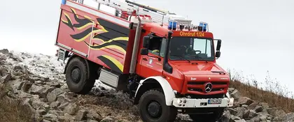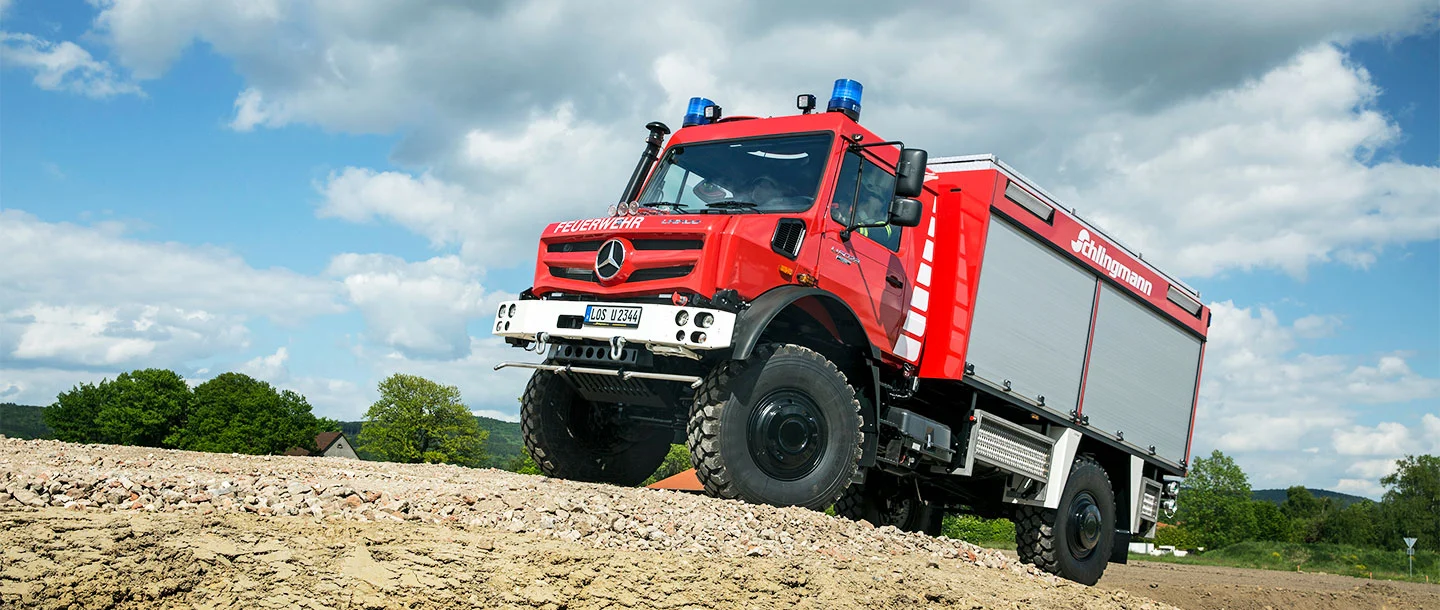 In order to be well-equipped for the future, the ability to build on tradition and experience is a major advantage. The well-proven universally applicable motorised device – or Unimog for short – has been used in firefighting since the 1950s and also ticks both of the afore mentioned boxes. With its legendary chassis concept, the off-road professional has spent 75 years providing help wherever it was needed. Even in places which are impossible for other vehicles to reach.